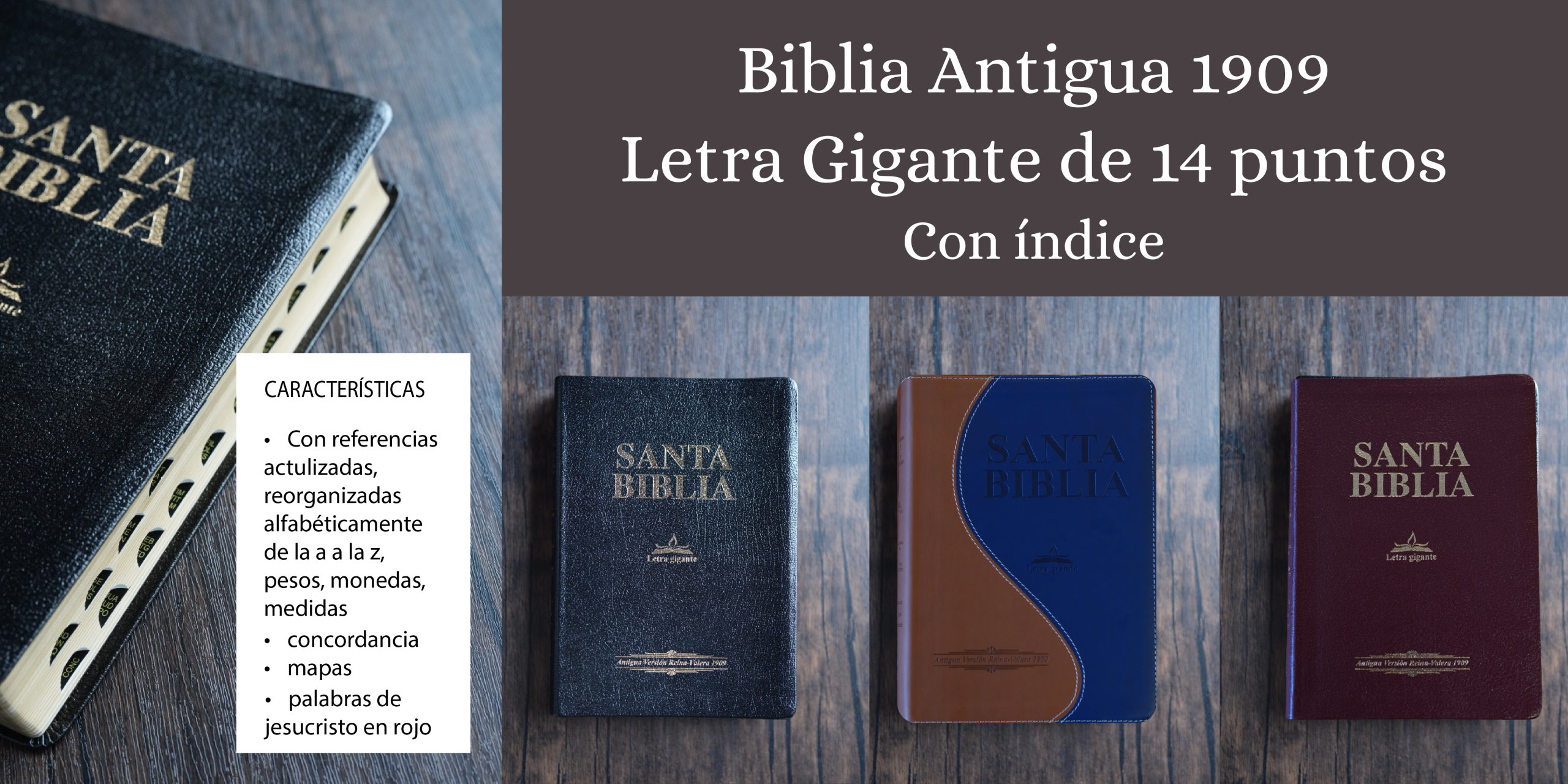 Biblia Antigua 1909, Letra Gigante de 14 Puntos, Marrón, Con Indice