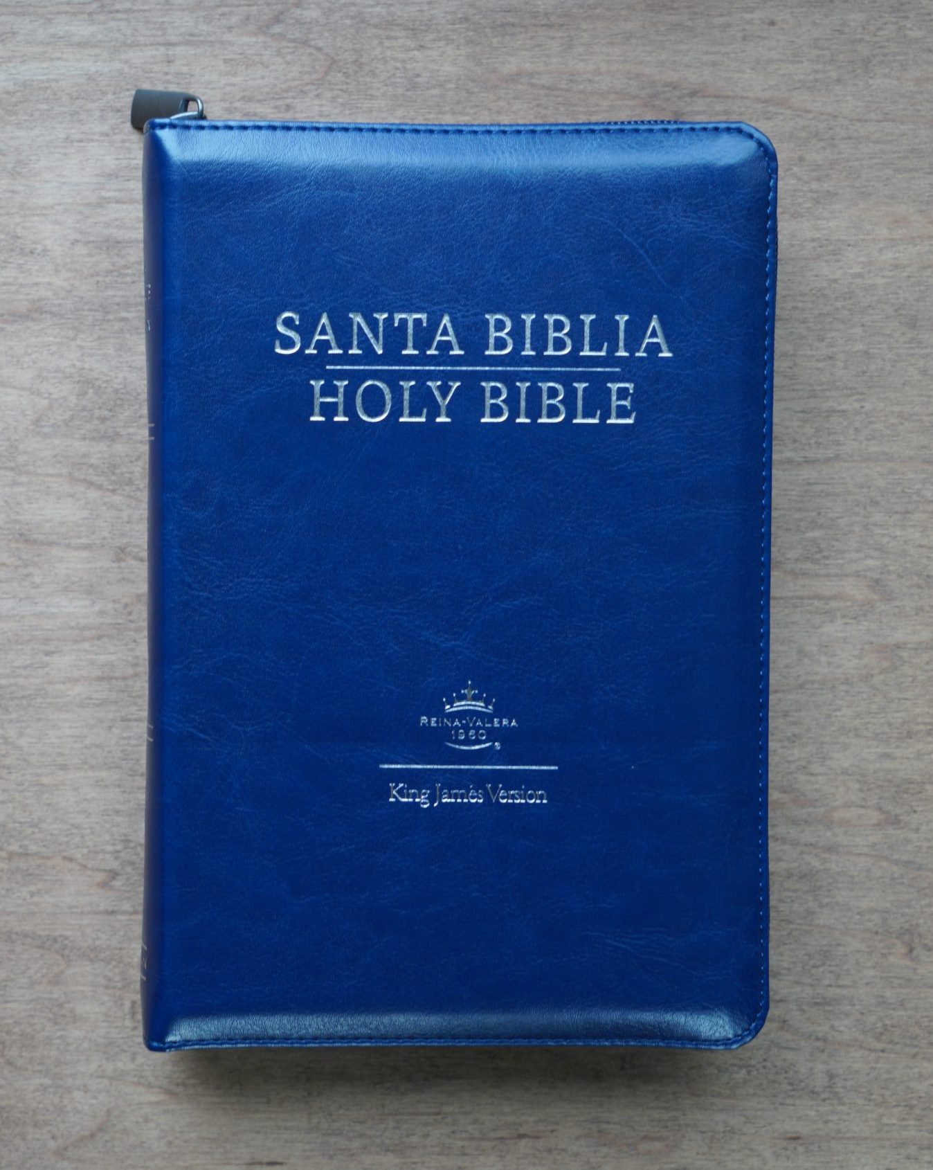 Biblia Bilingue Tamaño Personal RVR 1960 Azul Marino, Símil Piel Con Índice y Cierre/ Navy Blue Bilingual Bible King James Version With Index and Zipper