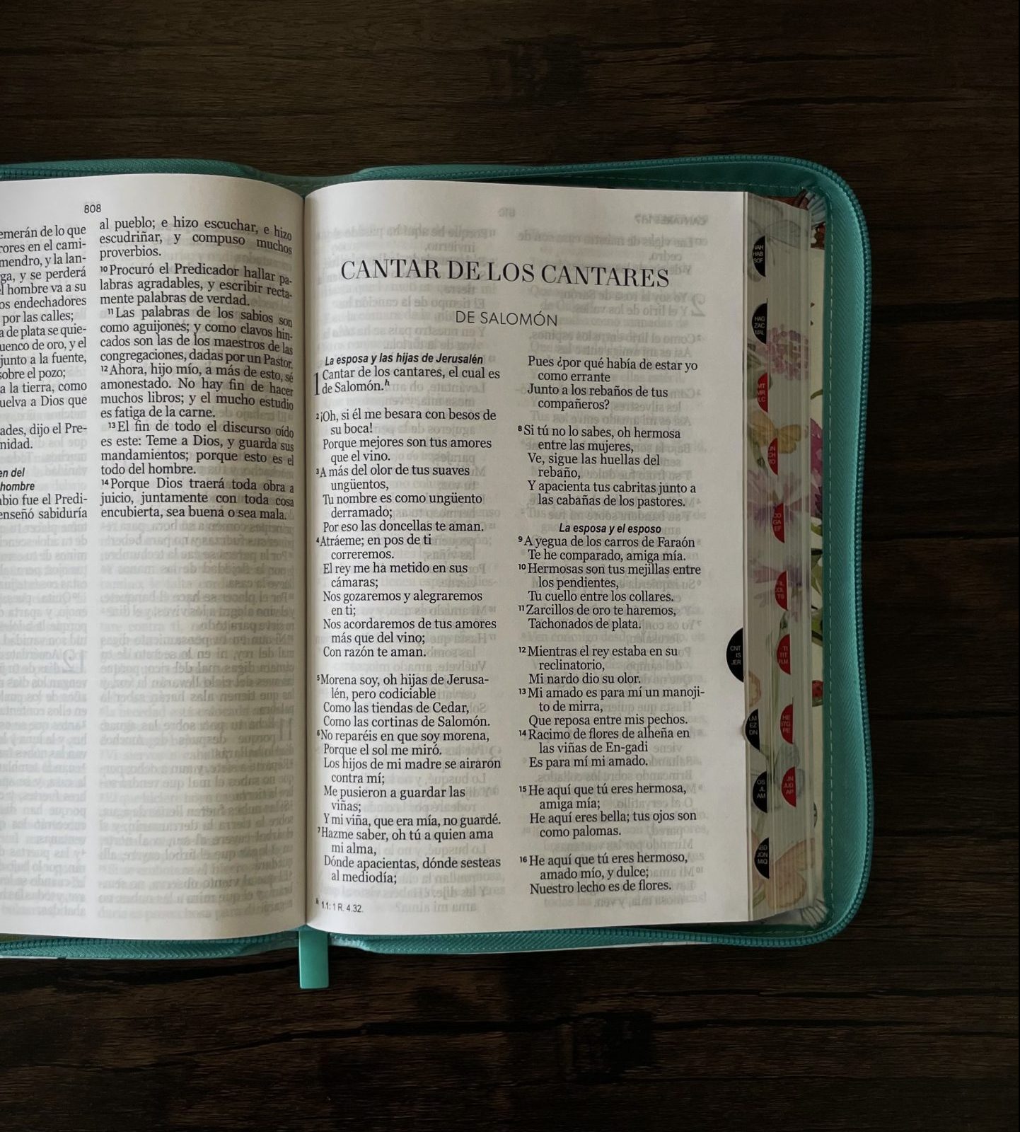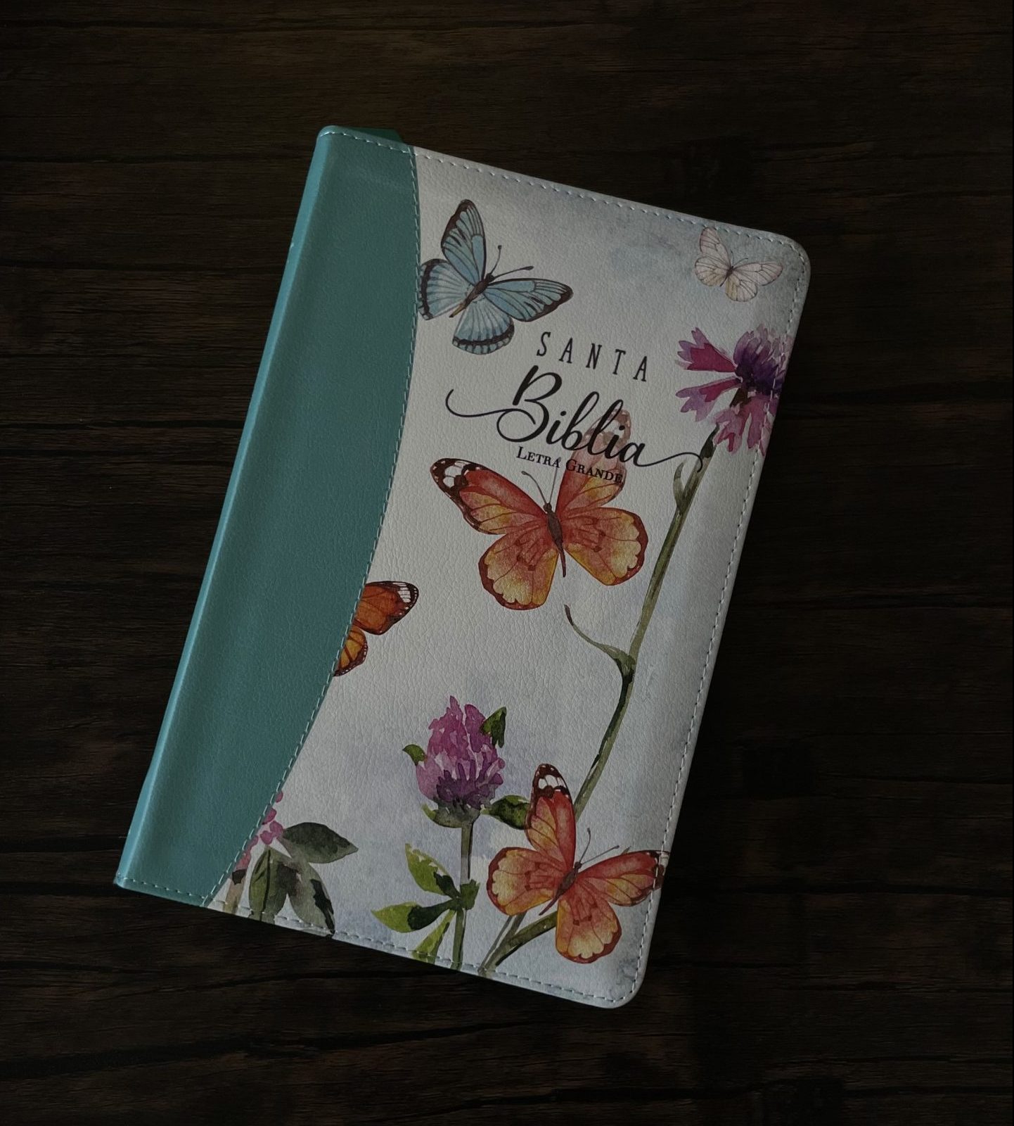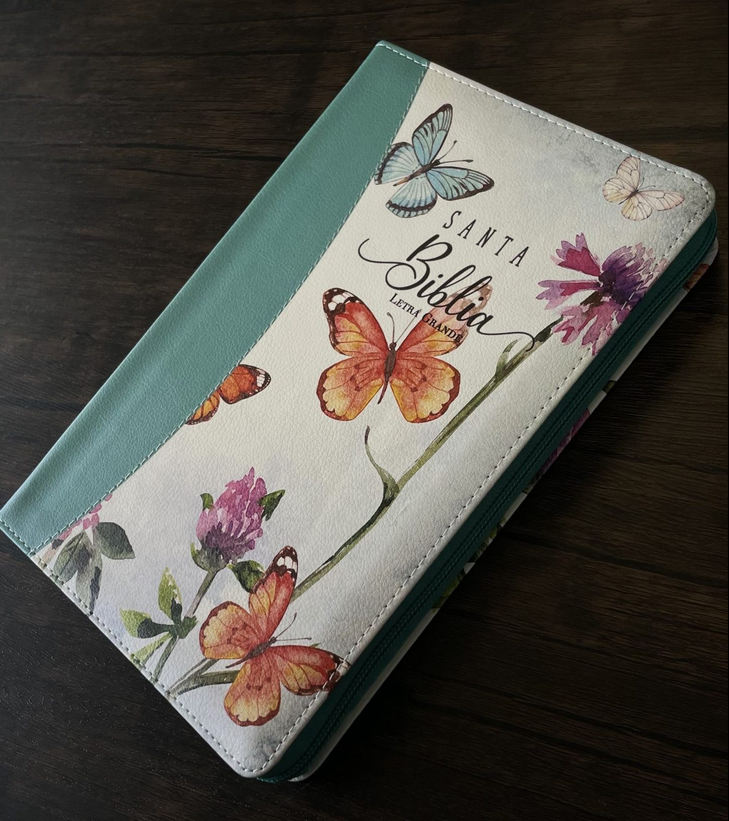 Biblia Reina Valera 1960 Tamaño Manual Letra Grande 12 puntos- Imitación Piel Turquesa/Mariposas Con Cierre y Con índice
