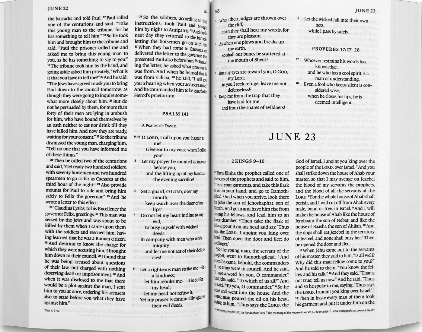 Setting and maintaining a goal of reading through the Bible in a year can be tough in the busyness of everyday life. The ESV Every Day Bible was designed from the ground up to be an inviting daily-reading Bible, to help readers achieve their goal of reading through the Bible in a year. Each daily reading presents a passage from the Old Testament, New Testament, Psalms, and Proverbs in an attractive double-column typesetting printed on high-quality Bible paper. The combination of a thoughtful reading plan, beautiful layout, and affordable cost make this Bible a perfect choice for those looking to savor their reading of the Bible over the course of a year.