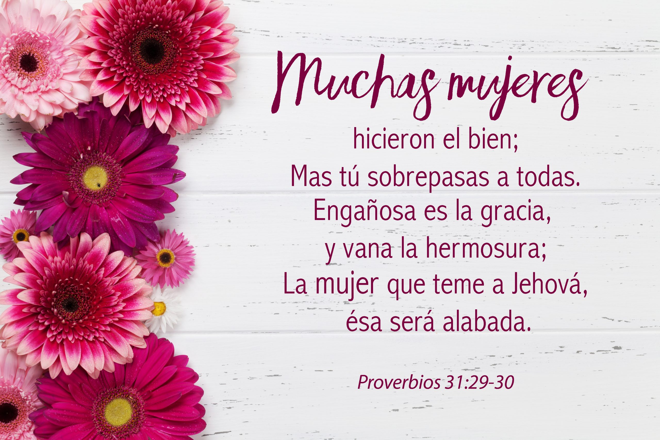 Muchas mujeres hicieron el bien; Mas tú sobrepasas a todas. Engañosa es la gracia, y vana la hermosura; La mujer que teme a Jehová, esa será alabada.