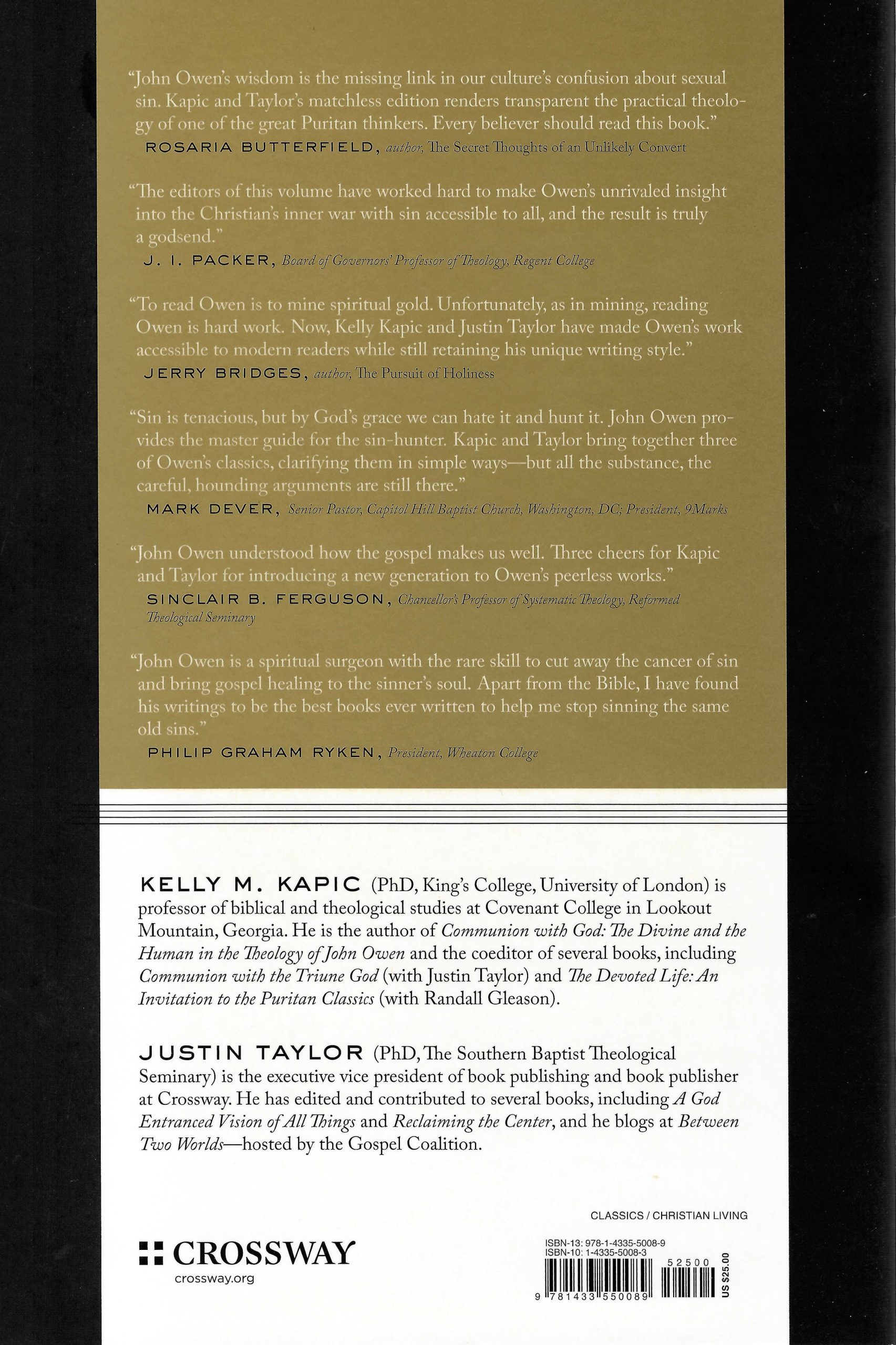 John Owen’s writings, though challenging, are full of rich spiritual insights. In this unabridged volume, editors Justin Taylor and Kelly Kapic have edited three of Owen’s classic works—Of the Mortification of Sin in Believers, Of Temptation: The Nature and Power of It, and The Nature, Power, Deceit, and Prevalency of Indwelling Sin. They have updated the author’s language, translated the Latin, Greek, and Hebrew, and footnoted difficult or unknown phrases, all without sacrificing any of Owen’s original message. These three treatises on temptation, sin, and repentance are theologically robust and insightful while also being accessible to modern readers. Overcoming Sin and Temptation will help a new generation benefit from the writings of this remarkable Puritan. Now redesigned with a new cover.