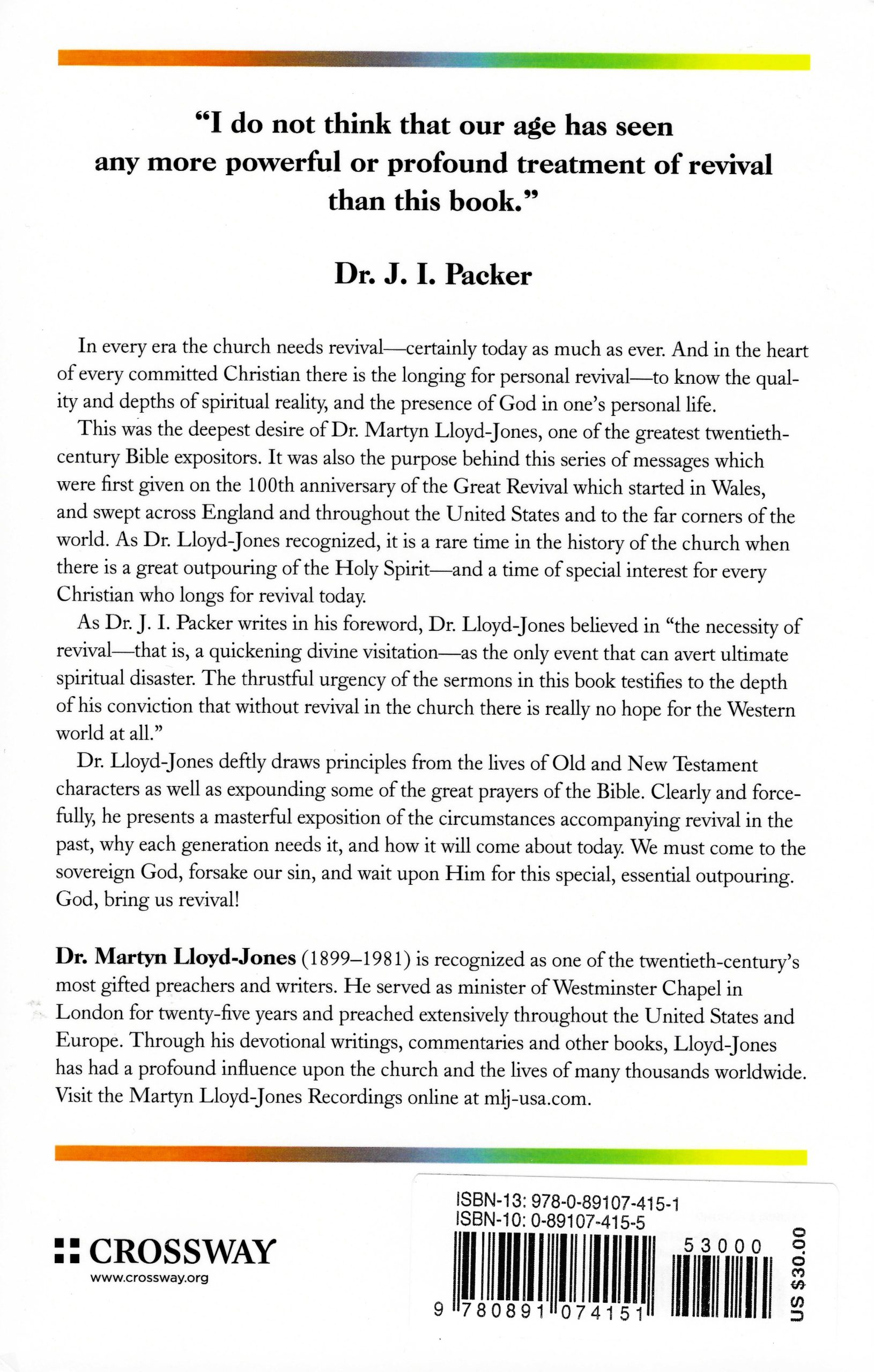As Dr. J. I. Packer writes in his foreword, Dr. Lloyd-Jones believed in “the necessity of revival—that is, a quickening divine visitation—as the only vent that can avert ultimate spiritual disaster. The thrustful urgency of the sermons in this book testifies to the depth of his conviction that without revival in the church there is really no hope for the Western world at all.”