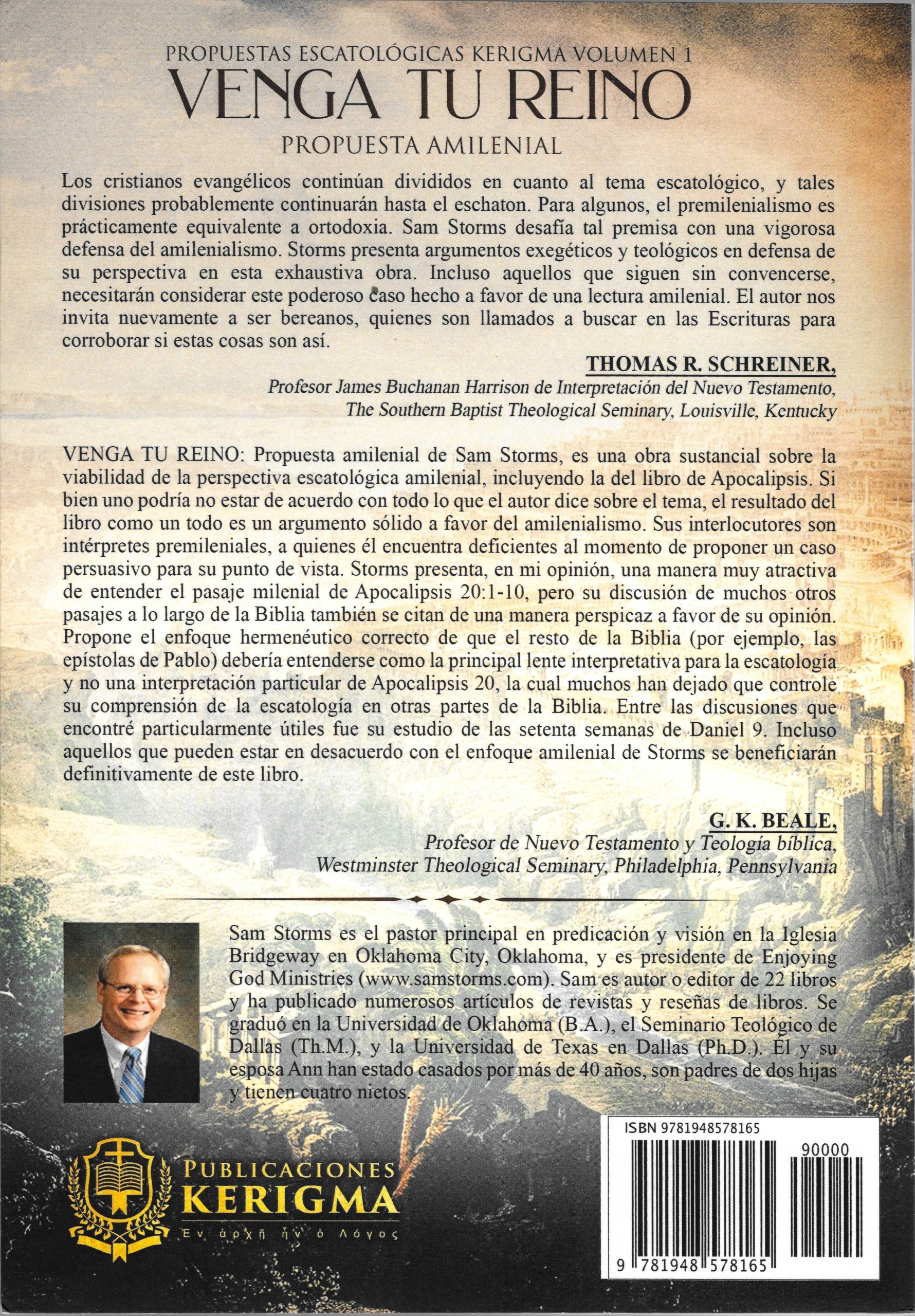 Escatología bíblica: Propuesta amilenial de Sam Storms, es una obra sustancial sobre la viabilidad de la perspectiva escatológica amilenial, incluyendo la del libro de Apocalipsis. Si bien uno podría no estar de acuerdo con todo lo que el autor dice sobre el tema, el resultado del libro como un todo es un argumento sólido a favor del amilenialismo. Sus interlocutores son intérpretes premileniales, a quienes él encuentra deficientes al momento de proponer un caso persuasivo para su punto de vista. Storms presenta, en mi opinión, una manera muy atractiva de entender el pasaje milenial de Apocalipsis 20:1-10, pero su discusión de muchos otros pasajes a lo largo de la Biblia también se citan de una manera perspicaz a favor de su opinión. Propone el enfoque hermenéutico correcto de que el resto de la Biblia (por ejemplo, las epístolas de Pablo) debería entenderse como la principal lente interpretativa para la escatología y no una interpretación particular de Apocalipsis 20, la cual muchos han dejado que controle su comprensión de la escatología en otras partes de la Biblia. Entre las discusiones que encontré particularmente útiles fue su estudio de las setenta semanas de Daniel 9. Incluso aquellos que pueden estar en desacuerdo con el enfoque amilenial de Storms se beneficiarán definitivamente de este libro.G. K. Beale.